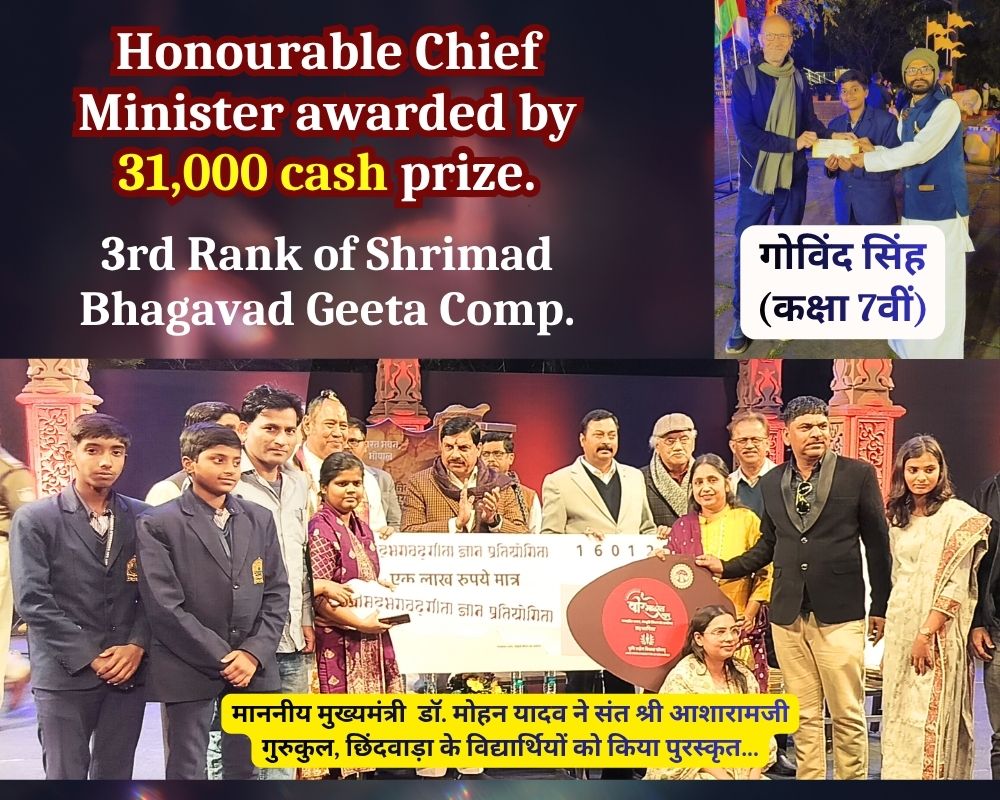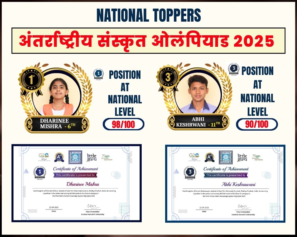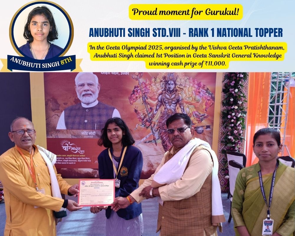 In the Geeta Olympiad 2025, organised by the Vishva Geeta Pratishthanam, Anubhuti Singh claimed 1st Position in Geeta Sanskrit General Knowledge winning cash prize of ₹11,000.